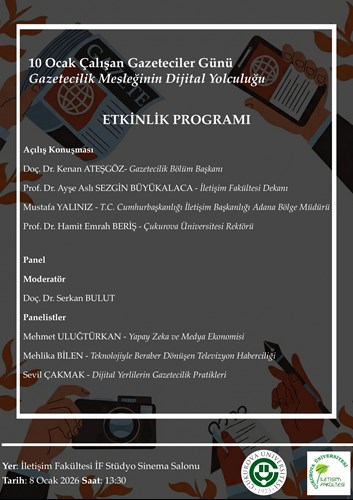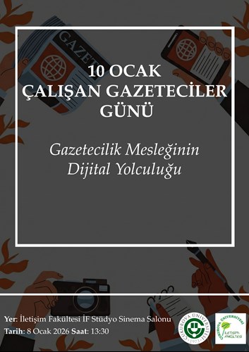 08 Ocak Çarşamba günü saat 13:30'da İF Stüdyo binası Sinema Salonunda 10 Ocak Çalışan Gazeteciler günü kapsamında hazırladığımız etkinliğimiz olacaktır. Hepinizi bekleriz